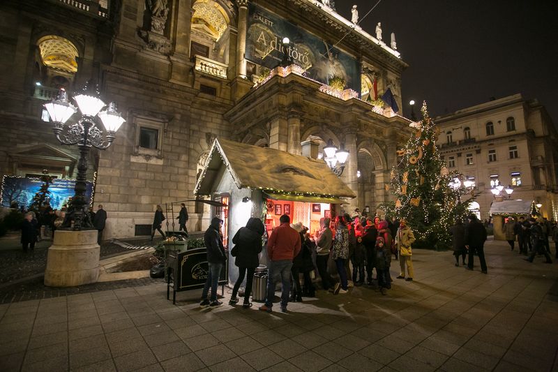 Az Operaház előtt sorakozó kis házikókba ismét beköltöznek az elmúlt év népszerű standjai. Nívós kiadványaival és más ajándéktárgyaival települ ki az OperaShop, az OperaCafé forró italokkal és karácsonyi süteményekkel várja az erre járókat, míg az OperaFleur egyedi mézeskalácsokkal, adventi díszekkel és kézműves termékekkel készül az ünnepekre, de a kürtőskalács és sült gesztenye illata is bejárja majd az Operaház előtti teret. A forralt bor árusításában a Diótörő-előadások előtt egy órával idén is az Operaház vezető énekesei és balettművészei – utóbbiak közt Felméry Lili, Pap Adrienn, Leblanc Gergely – segédkeznek, a bevétel egy része pedig ez alkalommal is jótékony célt szolgál, amiről az Ökumenikus Segélyszervezet gondoskodik. Az eseménysorozat támogatója az A’Capella Szőlőbirtok, a Piarista Bor és a Skrabski Pincészet.