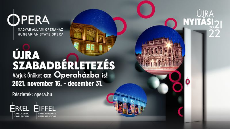 A Magyar Állami Operaház 2021. november 16. és december 31. között az Újranyitó Évad 2022-es előadásaira a közelmúltban bevezetett új, kedvezményes jegyvásárlási konstrukcióval kínál szabadbérleteket vagy jegyeket. Az ún. szabadbérlet lehetőséget biztosít vásárlóinknak, hogy kedvenc előadásaikat az általuk preferált dátumokon és a nekik tetsző ülőhelyeket kiválasztva tekinthessék meg.