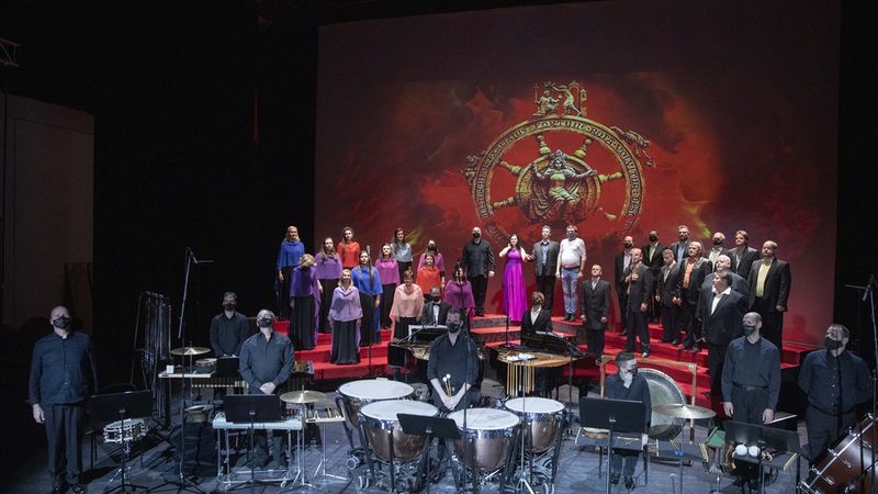 A nagyszabású oratorikus mű koncertszerű keresztmetszetét Haja Zsolt (bariton) és Szemere Zita (szoprán) szólójával hallhatta az online közvetítés közönsége. Közreműködött a Magyar Állami Operaház Énekkara (karigazgató: Csiki Gábor), Tóth Sámuel Csaba, Kálvin Balázs (zongora), Maros Ádám (timpani), Cser Gusztáv Péter, Szente Gáspár, Tóth János, László Attila, Császár András és Nagy Roland (ütőhangszerek). Vezényelt: Kocsár Balázs, az est művészeti vezetője Aczél András, műsorvezetője Mona Dániel volt.