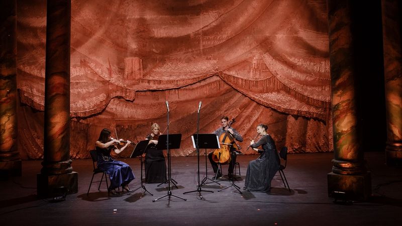 Az Opera Zenekar egy korábbi adásban már játszott balettzenét A ditótörőből, nézőink most Pjotr Iljics Csajkovszkij (1840–1893) egy másik jelentős művéből, A hattyúk tavából hallhattak részleteket. A Pas de deux, A kis hattyúk tánca és a Spanyol tánc Rácz János (fuvola), Rácz Ottó (oboa), Várnai Beáta (klarinét), Polonkai Judit (fagott), Horváth Bence (trombita), Nagy Csaba (trombita), Tóth Gábor (kürt), Gáspár Tamás (kürt), Szabó Sándor (harsona), Fülöp Lajos (harsona) és Vámosi Zoltán (ütőhangszerek) játékában volt hallható. A Francia Múzsa Szezonjának zeneszerzői közül ketten is szerepeltek a műsorban. Erik Satie (1866–1925) Trois Gymnopédies című művét Novák András átiratában Baráth Nóra és Simon Beáta szólaltatták meg angolkürtön és hárfán. Francis Poulenc (1899–1963) Szonáta két klarinétra című kompozíciójának különlegessége, hogy második tételének témája a zenszerző legjelentősebb művében, az intézmény repertoárján is megtalálható A kármelitákban is felcsendül. A szonátát Kiss Sándor és Csongár Péter klarinétművészek előadásában élvezhették a közvetítés nézői. A péntek esti zenei utazást Wolfgang Amadeus Mozart (1756–1791) D-dúr fuvolanégyesének (KV 285) első tétele tette teljessé, amelyet Menyhárt Zsuzsanna (fuvola), Marosné Molnár Zsófia (hegedű), Winkler Zsófia (brácsa) és Gál Béla (cselló) adtak elő.